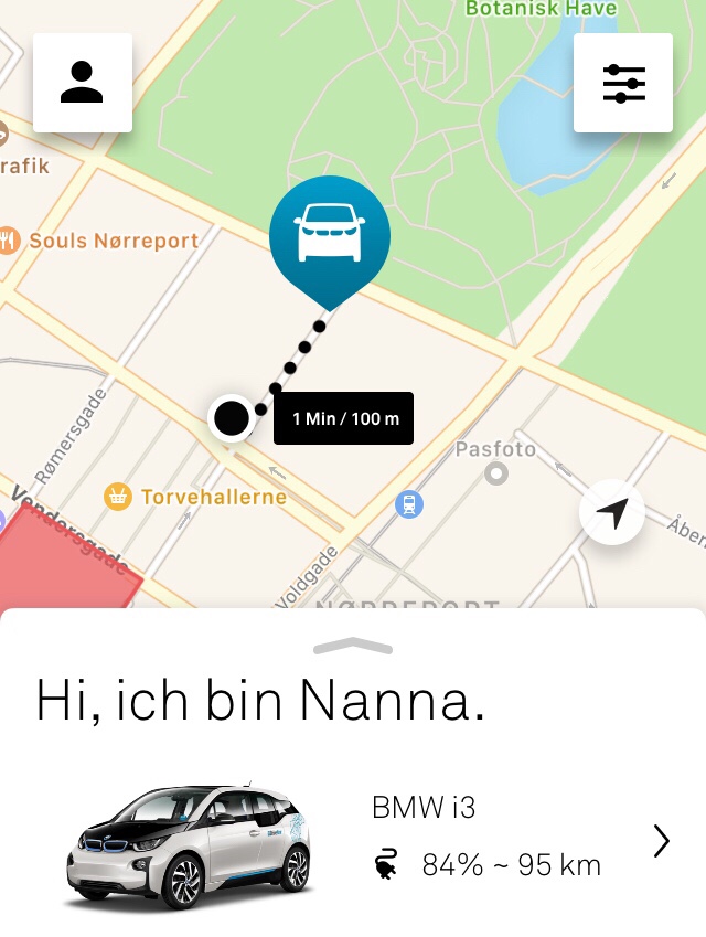 Meine Carsharing-App legt mir nahe, hier mal einen elektrischen BMW zu fahren. Nach all dem E-Biking ist Nanna ne Überlegung wert.